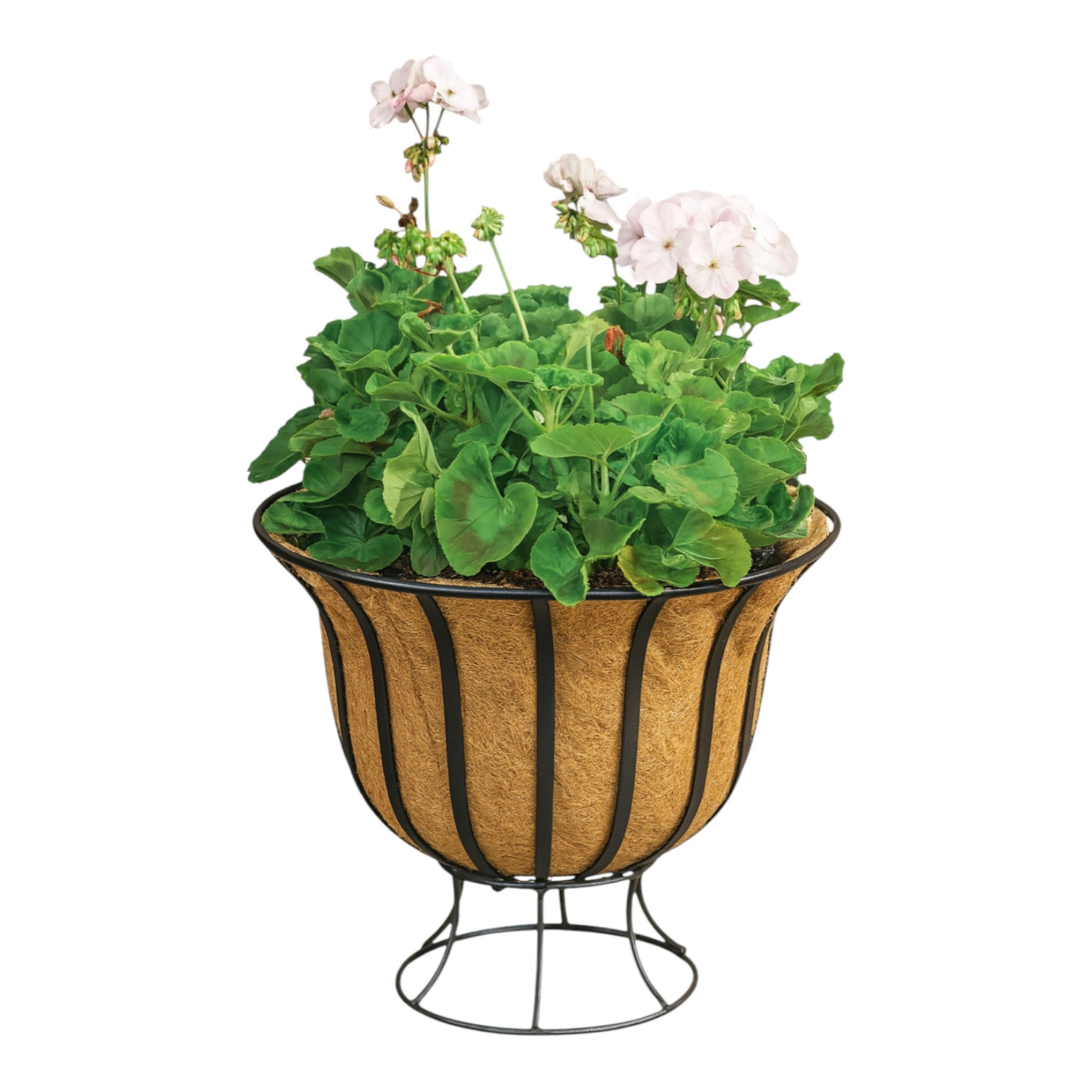 Refined, classic, and effortlessly stylish – the Belgravia Metal Floor Planter brings a touch of sophistication to any patio, doorway or garden path. Crafted from a durable black powder-coated steel frame with a sweeping urn-like shape, it includes a pre-shaped natural coco liner to promote healthy drainage and root aeration.